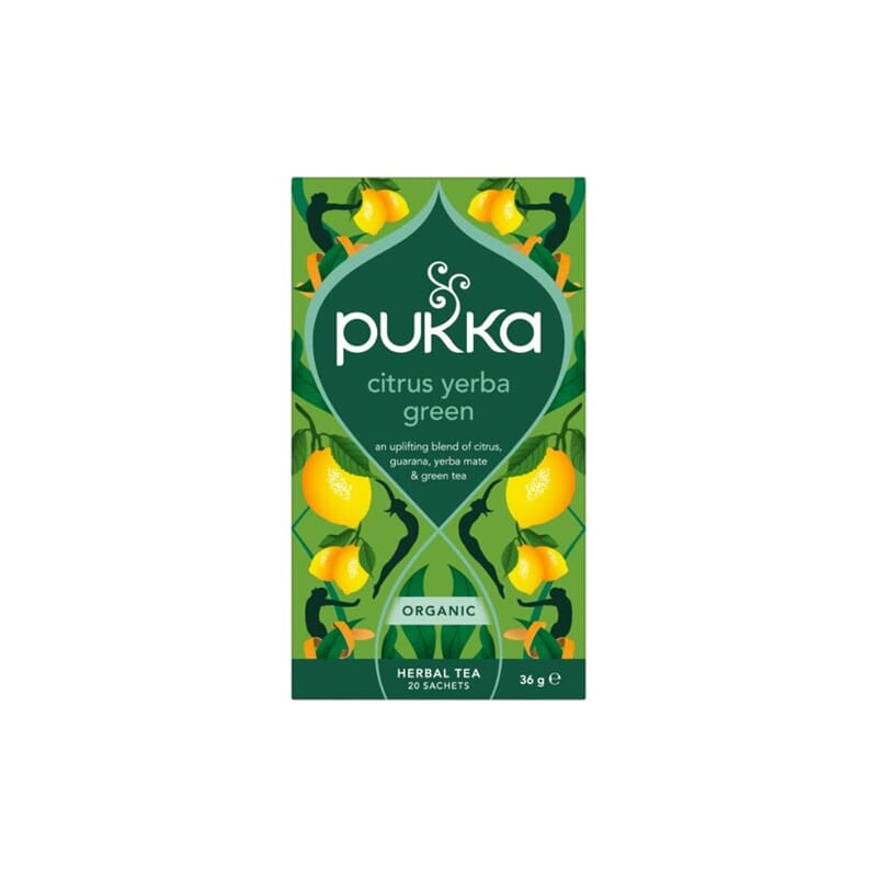 Pukka Citrus Yerba Green er en livlig blanding av grønn te, sitrus og guarana og yerba mat nøye utformet for å vekke dine sanser. Denne teen er en del av Pukka sin urtebaserte grønne vitalitetsserie og inneholder denne utvalgte kombinasjonen av økologiske urter og etisk og bærekraftig hentede ingredienser.