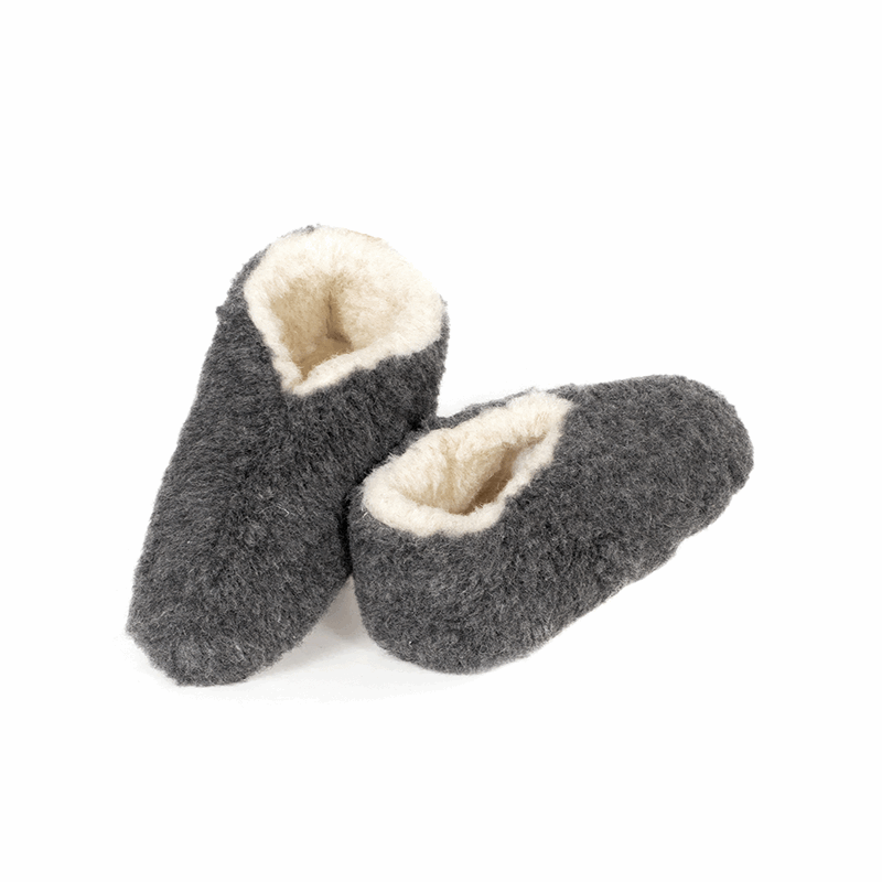 Tøfler laget av kløfri merinoull.