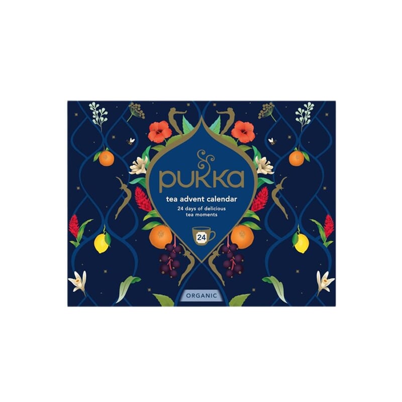 Pukka julekalender inneholder et stort utvalg av økologiske teer i 12 ulike varianter. En smakfull og bærekraftig måte å telle ned til jul på, med teer laget av nøye utvalgte urter og krydder.