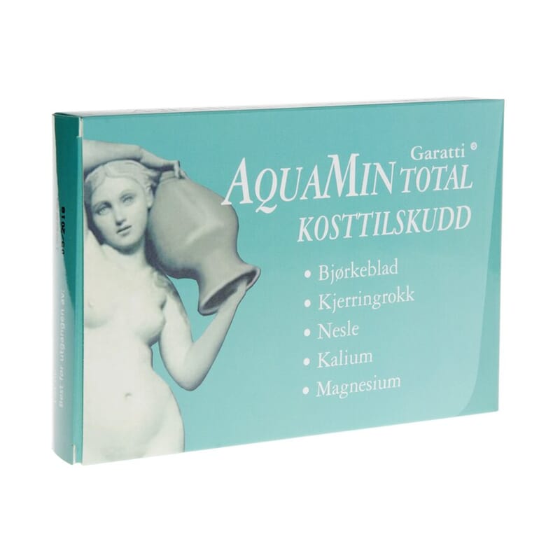 AquaMin Total er satt sammen av kalium, magnesium, kjerringrokk, brennesle og bjørkeblad for å få maksimal effekt, ettersom disse mineralene og urtene er de mest effektive og mest kjente mot disse problemene. AquaMin Total inneholder kun naturlige virkestoffer, og har ingen kjente bivirkninger. AquaMin Total tørker ikke ut kroppen for vann eller kalium.