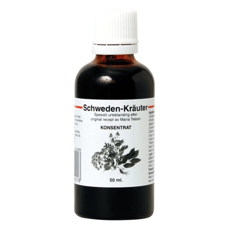 Schweden-Kräuter ? et gammelt universalmiddel. Resepten ble funnet etter den avdøde berømte svenske legen, rektor i medisin, Dr. Samst. Han forulykket under en ridetur i sitt 104. leveår. Ved en tilfeldighet kom den østerrikske Maria Treben i besittelse av en avskrift hvor virkningen og bruken av Schweden-Kräuter belyses i 46 punkter. Maria Trebens livslange arbeid med Schweden-Kräuter og andre plantemidler er beskrevet i hennes bok Sundhed fra Guds Apotek