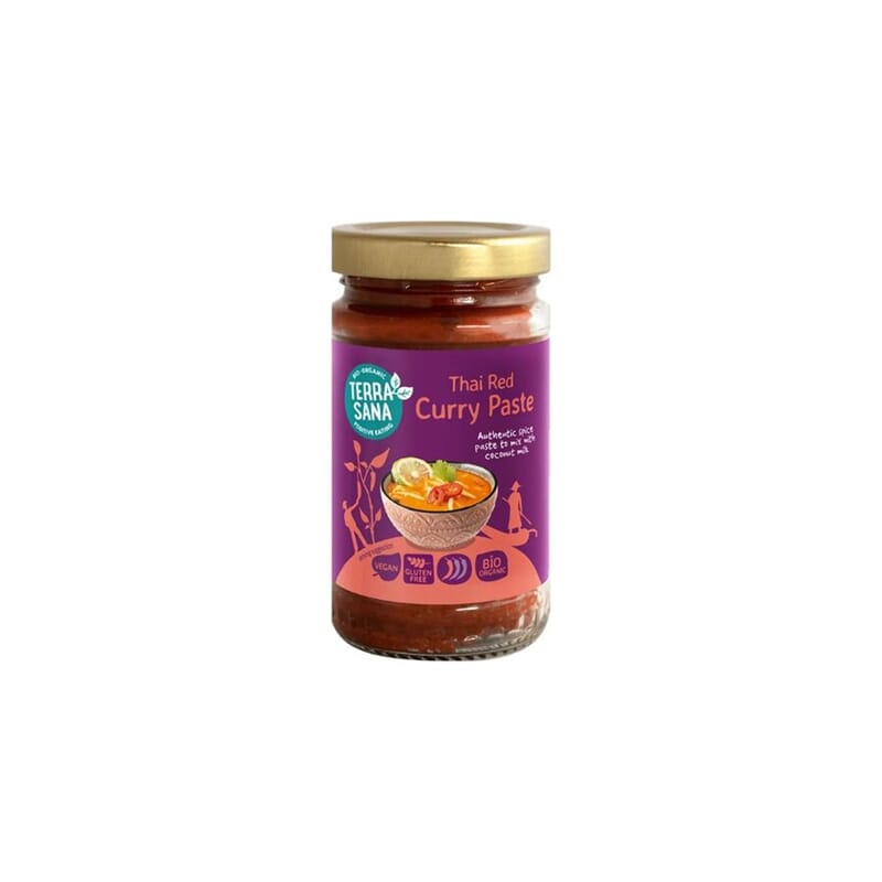 En aromatisk og kraftfull rød currypaste som gir deg autentisk thailandsk smak på en enkel måte. Laget med økologiske urter og krydder som sitrongress, sjalottløk, galangal, korianderfrø og spisskummen, samt en generøs mengde chili for et skikkelig spicy preg.