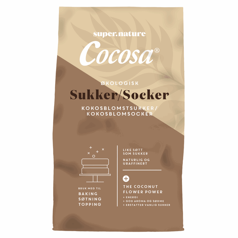 Cocosa kokosblomstsukker Økologisk, Uraffinert Til baking, søting av desserter og drikke, samt smakssetting av sauser, marinader og dressinger.