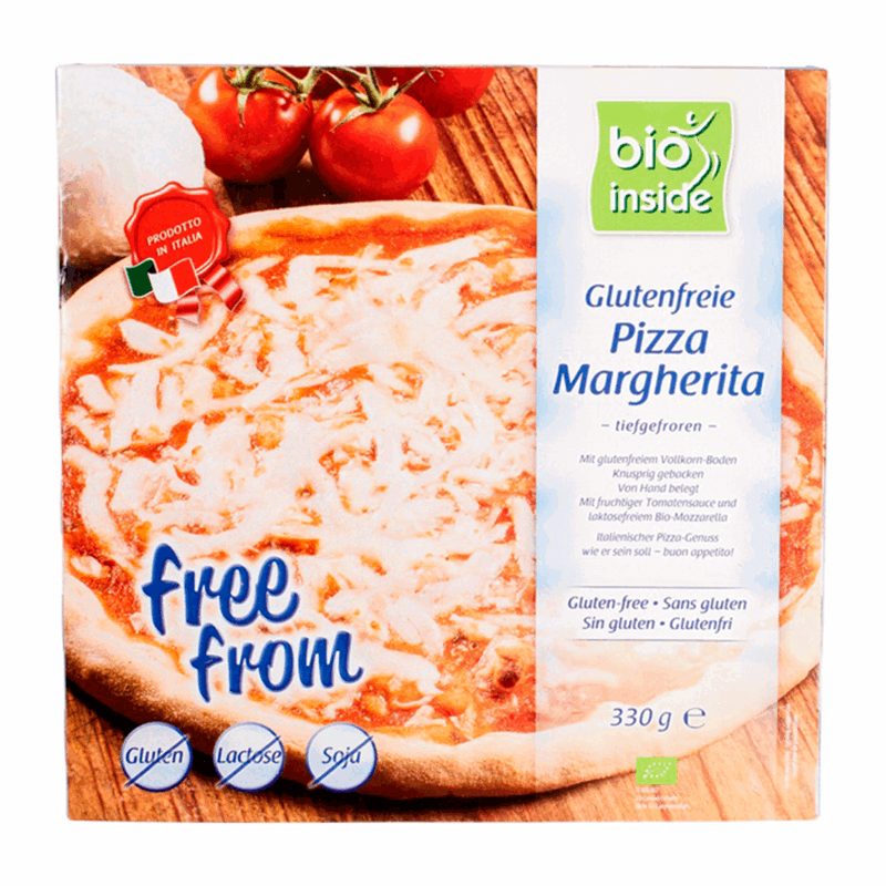 Bio Inside Pizza Margarita er en deilig gluten- og laktosefri margheritapizza laget med nøye utvalgte økologiske ingredienser. Den er enkel å tilberede – bare plasser den frosne pizzaen i ovnen, og etter noen minutter vil du nyte en sprø, velsmakende opplevelse.
