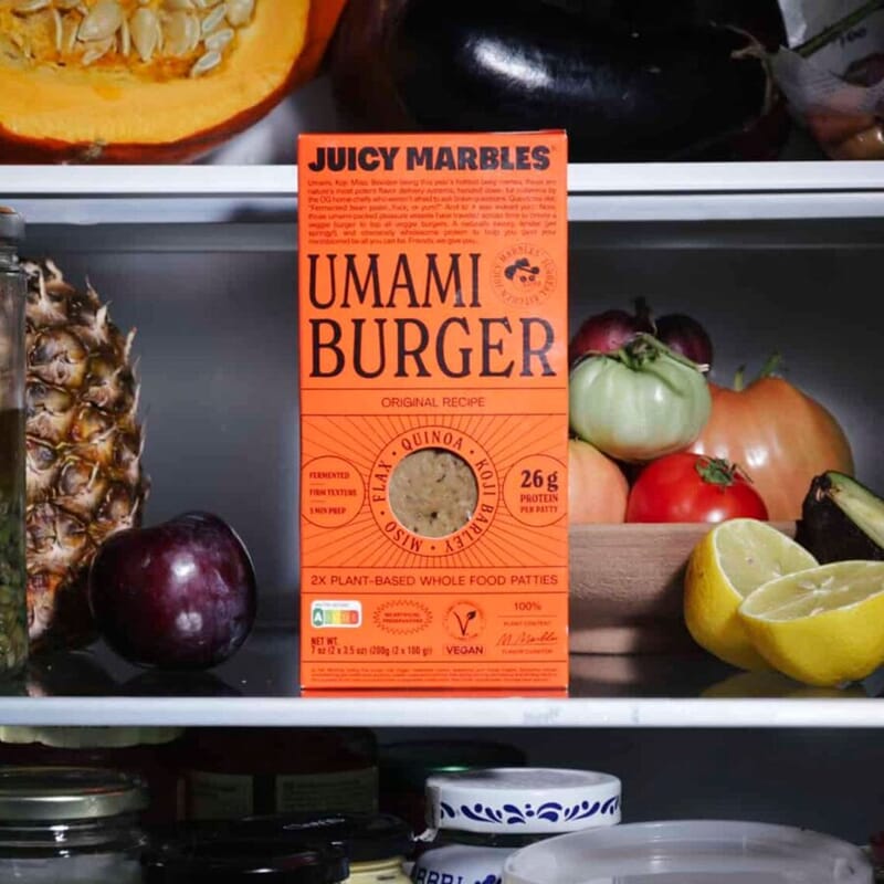 Juicy Marbles Umami Burger er et smakfullt plantebasert alternativ til tradisjonelle burgere. Burgerne er laget med nøye utvalgte ingredienser som miso og koji, som gir en fyldig og kompleks umamismak.