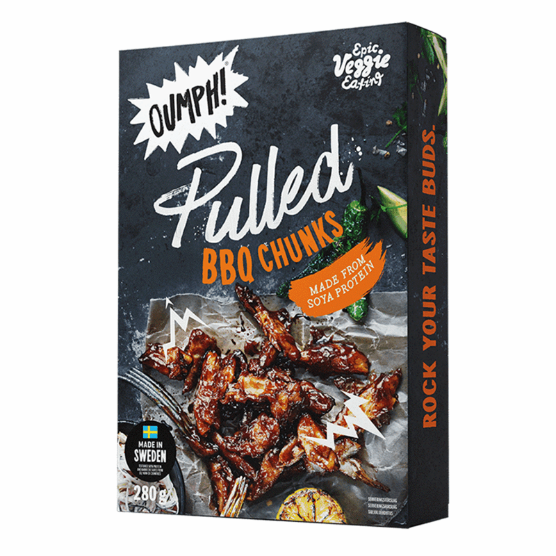 For den perfekte pulled Oumph!, stek i en panne på middels varme i 5-6 minutter frossen tilstand eller 3-4 minutter hvis den er tint, rør om og om igjen. Hold øye med varmen, pass på at den ikke blir for varm, ellers ender du opp med å karamellisere sausen! Fyll den i en wrap, topp tacoen eller putt i en røre – du velger!