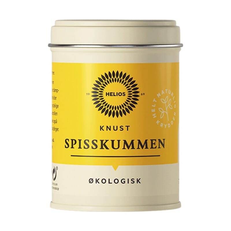 Helios Spisskummen er den autentiske smaken av økologisk spisskummen i praktisk, knust form. Disse varme, lett bitre frøene er dampbehandlet og raskt pakket i en tett beholder for å bevare den gode smaken og nydelige aromaen som er typisk for spisskummen.