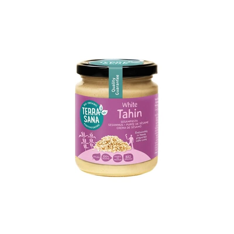 Tahini White er en ren og økologisk sesampaste laget kun av avskallede og ristede sesamfrø. Den har en mild og fyldig smak som passer like godt i hummus og dressinger som i bakverk og søte retter. Et allsidig og naturlig produkt for deg som ønsker ekte råvarer uten unødvendige tilsetninge