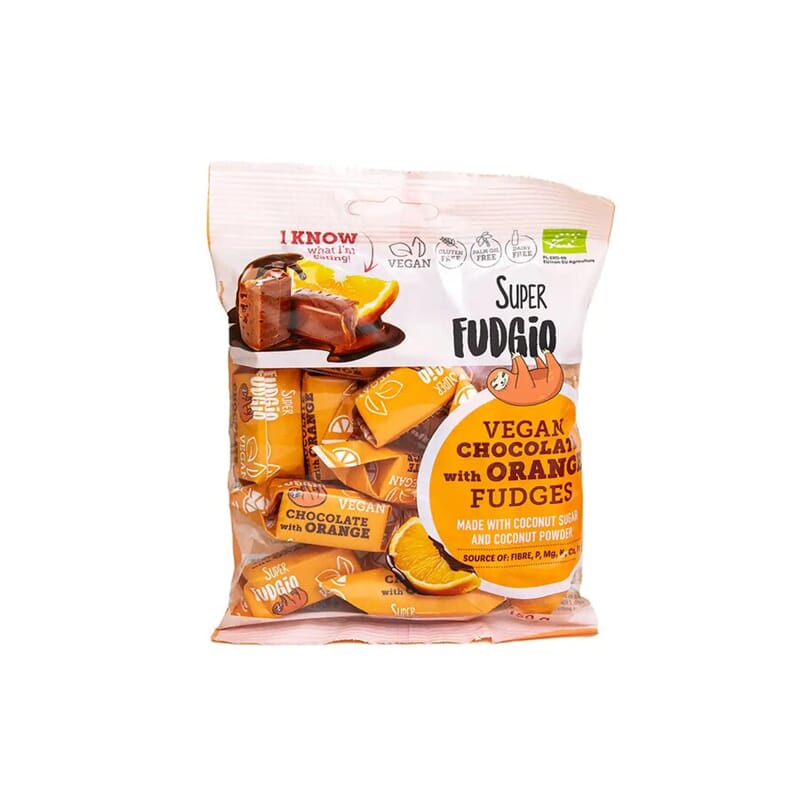 Super fudgio er en serie super gode veganske, glutenfrie, melkefrie og økologiske myke karameller. De er søtet med kokosblomstsukker som er en søtning som inneholder mineraler, har lav glykemisk indeks og er gunstig for tarmen. Super Fudgio karameller har få og kun naturlige ingredienser, dvs ingen kunstige farger eller smakstilsetninger.