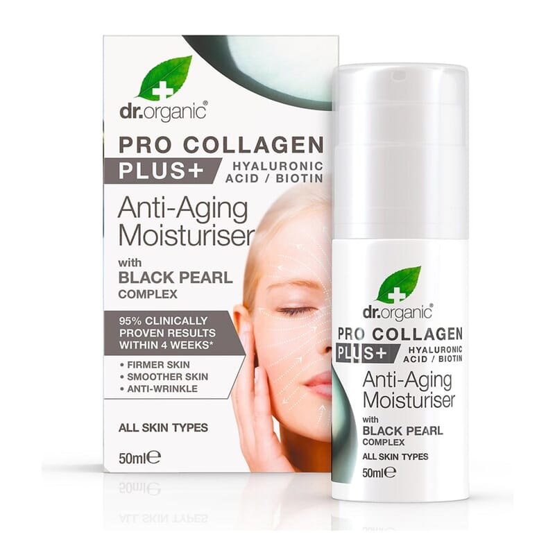 Dr. Organic Pro Collagen Black Pearl ansiktskrem inneholder hyaluronsyre og biotin som ifølge studier kan bidra til å redusere hudirritasjon og rød hud. Denne ansiktskremen gir opptil 24-timers fuktighet og bidrar til å redusere rødhet og rynker. Kremen inneholder også bjørnebærekstrakt for økt elastisitet og foryngelse av fine linjer og rynker.