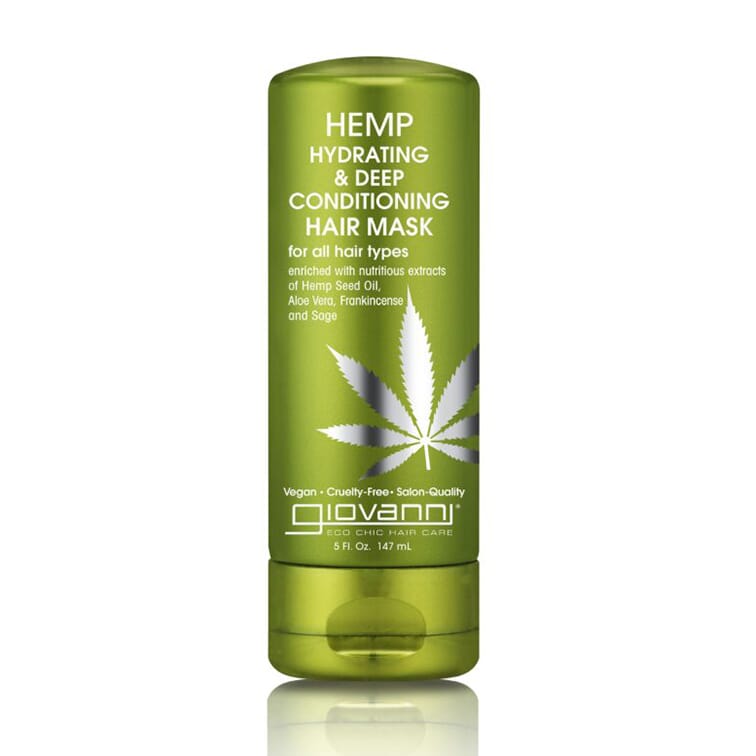 Etter mange års forskning har Giovanni formulert en blanding som hjelper med å revitalisere håret og reparere skadet og slitt hår. I tillegg til en dyp hydrering av hampefrøolje, inneholder hårmasken også aloe vera, gurkemeie, salvie, humle og kamille for en intenst fuktighetsgivende hårkur for hår og hodebunn.