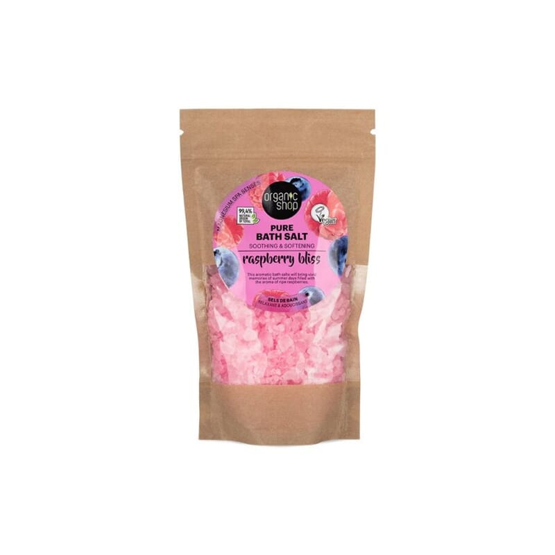 Organic Shop Raspberry Bliss Pure Bath Salt er et velduftende badesalt som løses opp i vann og gir en frisk og fruktig badeopplevelse. Saltet inneholder frukt- og blomsterekstrakter og passer godt når du ønsker et rolig og avslappende øyeblikk i hverdagen.