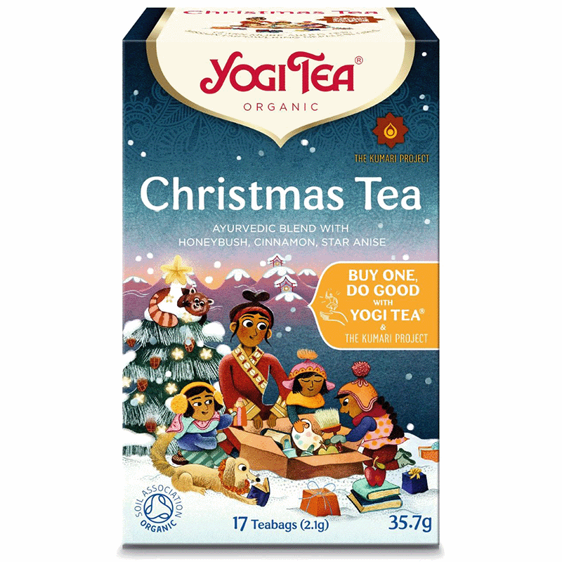 Et ferdig Yogi Tea-display fylt med 64 pakker av Yogi Christmas Tea