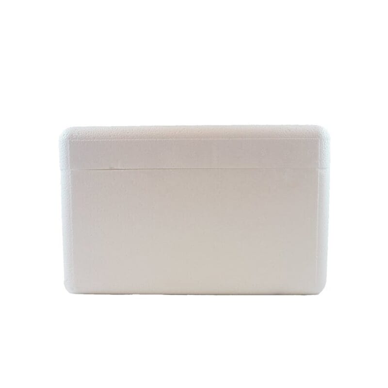 Isoleringsboks i isopor for transport av kjølevarer, inkludert kjøleelement.