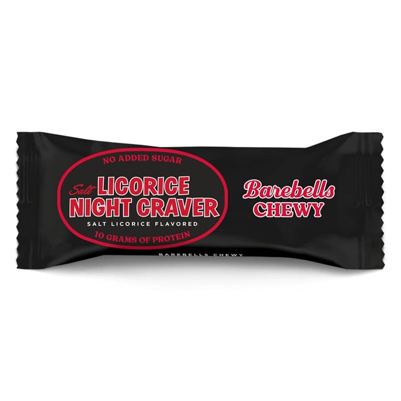 En spesialutgave av Chewy Bar, saltere og mer seig enn noen gang før. Salt Licorice Night Craver kommer i en størrelse på 40 gram, har en unik, luftig marshmallow-lignende konsistens, inneholder 10 gram protein per bar og er uten tilsatt sukker. Den er laget for kveldskosen, eller når som helst når cravingsene melder seg.